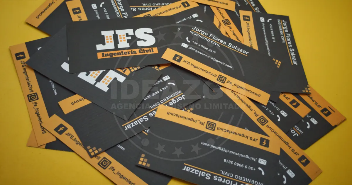 Los ingenierios de JFS ingeniería nos encargaron realizar un total de 100 tarjetas de presentación impresas con su marca gráfica en la parte frontal y sus datos de contacto al reverso esto fue impreso en opalina de 230 grs de un tamaño de 9x5 cm.